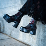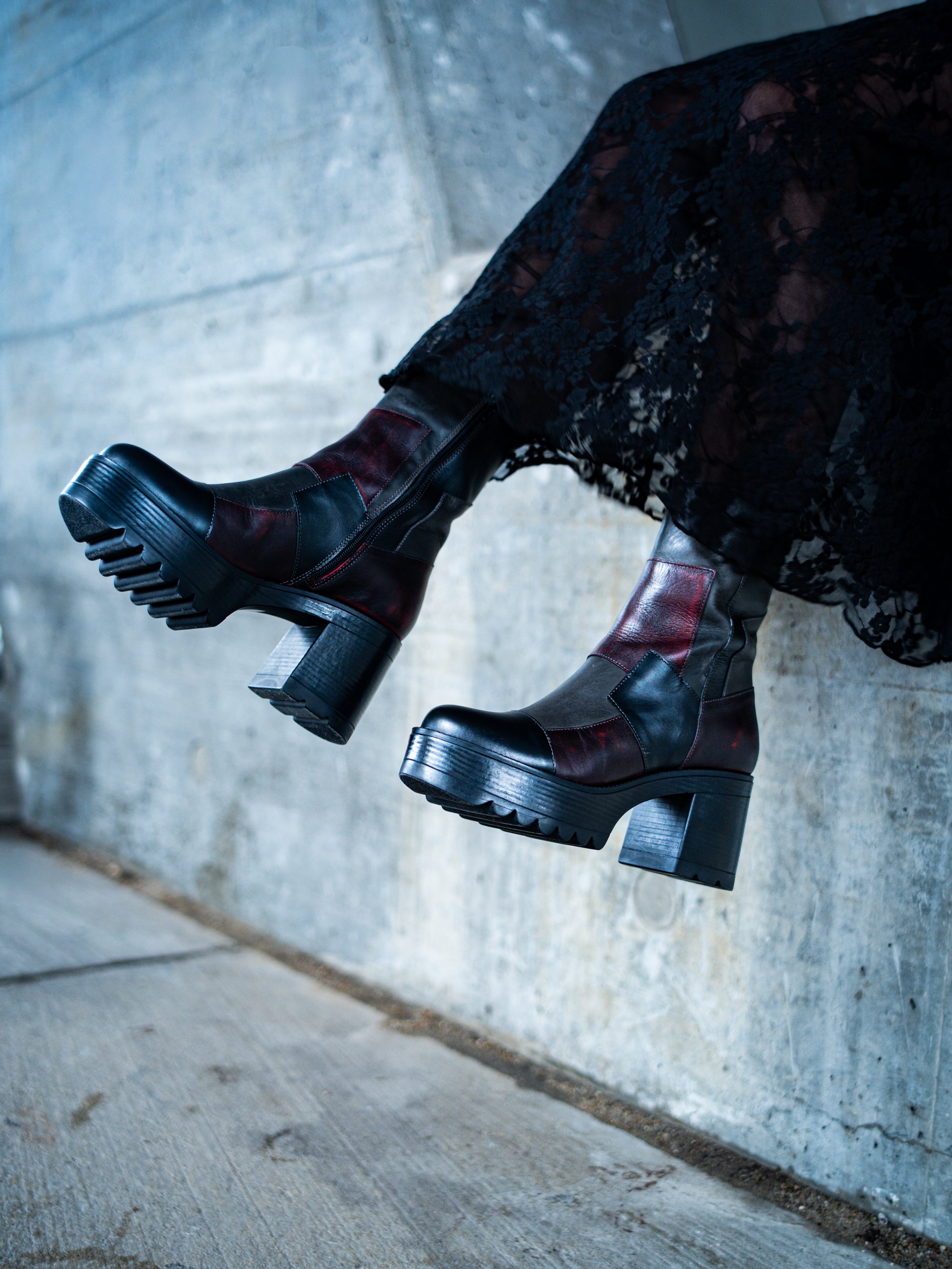 GROA Lava er statement-stilen, der taler i subtile toner — men stadig gør et stærkt indtryk. Det dybe sorte læder og de kunstneriske paneler er skabt af nøje udvalgte stykker restlæder fra vores egen produktion, hvilket giver hver sko sin helt egen struktur og personlighed. Samarbejdet med den islandske kunstner GUGUSAR tilfører designet en ekstra dimension: en rå, kreativ energi, der gør GROA Lava til et ægte wearable art-piece.