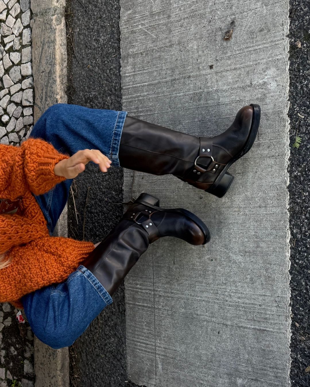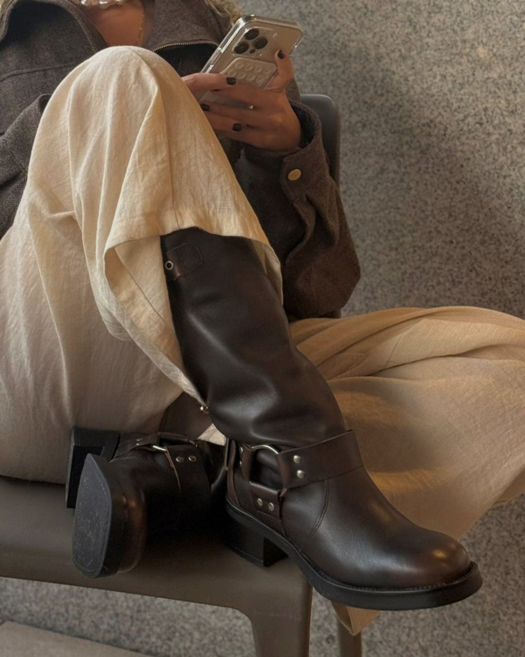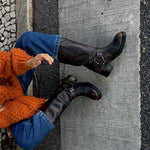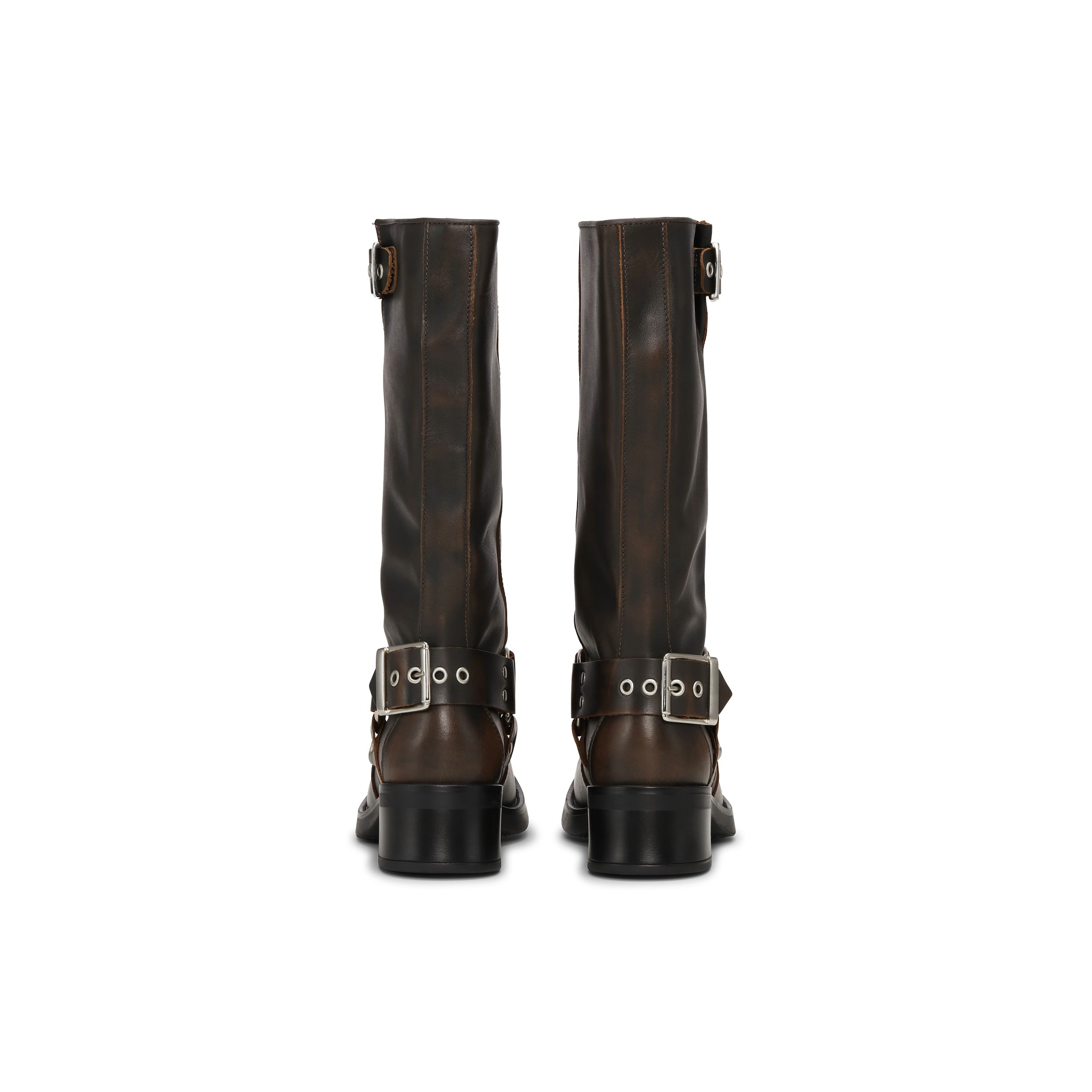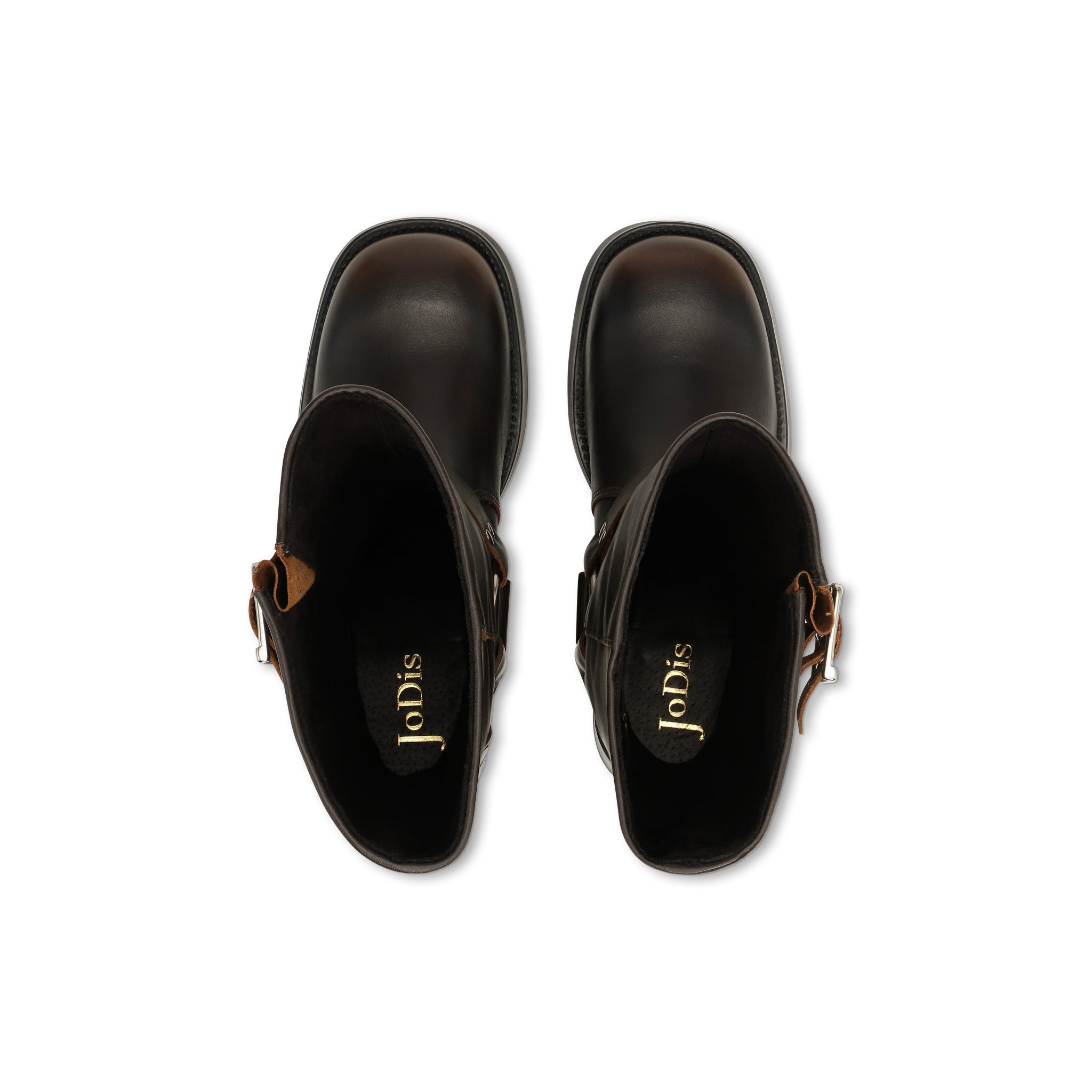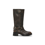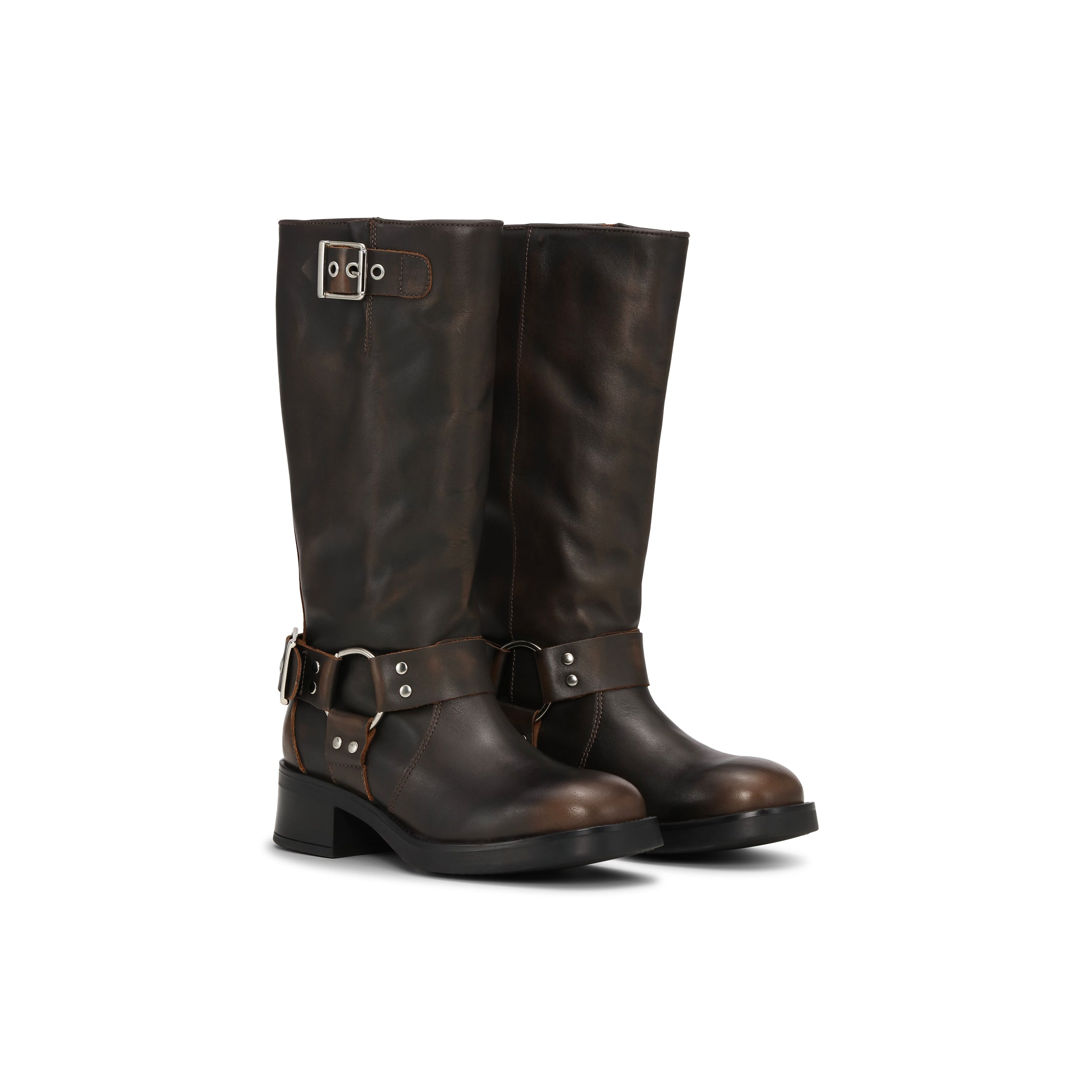 Saxy Biker Boots, er en støvle, der kombinerer tidløst design med en moderne biker stil. Fremstillet i mørkebrunt luksuslæder, tilbyder denne model en afrundet tå samt markante harness-detaljer omkring anklen og skaftet. Den justerbare spænde giver optimal komfort og et personligt fit. Med sin praktiske slip-on funktion er disse støvler lette at tage af og på. De rå metaldetaljer og robuste design tilfører et autentisk biker-look, perfekt til dig, der ønsker en stilfuld og kantet støvle.